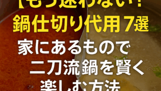 生活 【もう迷わない!】鍋仕切り代用アイデア7選!家にあるもので二刀流鍋を賢く楽しむ方法 「鍋料理で複数の味を楽しみたいけど、専用の仕切り鍋がない…」そんなお悩みはありませんか?家族の好みが違ったり、アレルギー対応が必要だったり、一つの鍋で二種類の味を楽しみたいシーンは意外と多いもの。実は、高価な専用品を買わなくても、家にある身... 生活